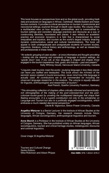This book focuses on perspectives from and on the global south, providing fresh data and analyses on languages in African, Caribbean, Middle-Eastern and Asian tourism contexts. It provides a critical perspective on tourism in postcolonial and neocolonial settings, explored through in-depth case studies.