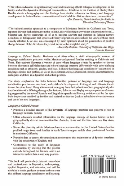 Addresses the relationship between home language practices & development of bilingual & biliterate abilities among language minority children, drawing on an ethnographic study of language socialization practices within Mexican-background families in US.