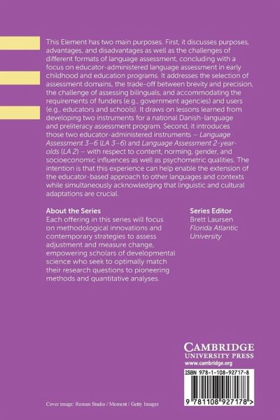 This Element discusses purposes, advantages, and disadvantages as well as the challenges of different formats of language assessment. It also introduces two educator-administered instruments with respect to content, norming, gender and socioeconomic influences as well as psychometric qualities.