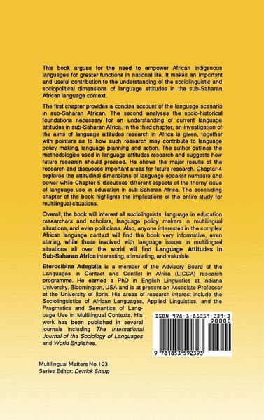 This book offers an informative sociolinguistic and sociopolitical description and analysis of language attitudes in sub-Saharan Africa. It emphasizes the strong ideological and polemical view that multilingualism in sub-Saharan Africa should seen as a resource and an asset.