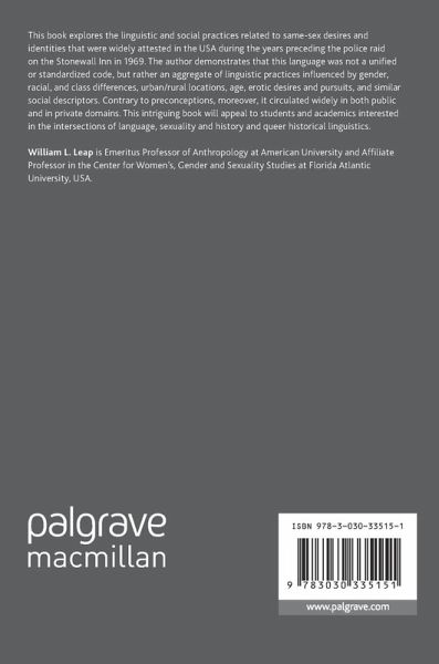 This book explores the linguistic and social practices related to same-sex desires and identities that were widely attested in the USA during the years preceding the police raid on the Stonewall Inn in 1969. The author demonstrates that this language was not a unified or standardized code, but rather an aggregate of linguistic practices influenced by gender, racial, and class differences, urban/rural locations, age, erotic desires and pursuits, and similar social descriptors. Contrary to preconceptions, moreover, it circulated widely in both public and in private domains. This intriguing book will appeal to students and academics interested in the intersections of language, sexuality and history and queer historical linguistics.