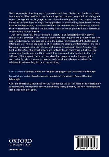 Their book will be of great practical importance to students and researchers in historical and comparative linguistics and will interest all those concerned with the classification and diffusion of languages in fields such as archaeology, genetics, and anthropology. Its approachable style will appeal to general readers seeking to know more about the relationship between linguistic and human history.This book considers how languages have traditionally been divided into families, and asks how they should be classified in the future. It tests current theories and hypotheses, shows how new ideas can be formulated, and offers a series of demonstrations that the new techniques applied to old data can produce convincing results. It will be of great practical interest to all those concerned with the classification and diffusion of languages in fields such ascomparative linguistics, archaeology, genetics, and anthropology.