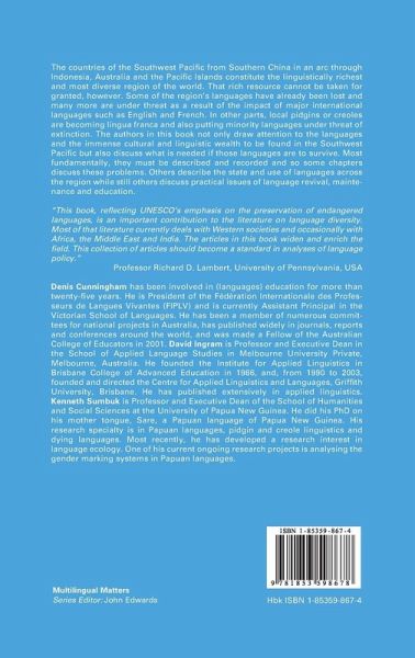 The Southwest Pacific constitutes the richest linguistic region of the world. That rich resource cannot be taken for granted. Some of its languages have already been lost; many more are under threat. The challenge is to describe the languages that exist today and to adopt policies that will support their maintenance.