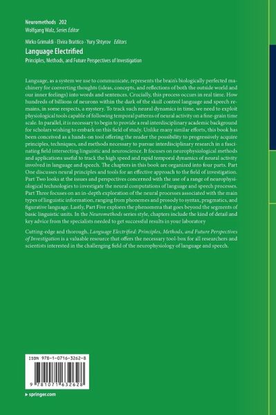 Cutting-edge and thorough, Language Electrified: Principles, Methods, and Future Perspectives of Investigation is a valuable resource that offers the necessary tool-box for all researchers and scientists interested in the challenging field of the neurophysiology of language and speech.