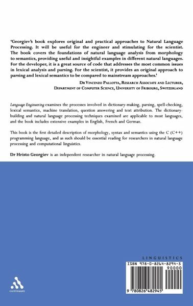 Language Engineering examines the processes involved in dictionary-making, parsing, spell-checking, lexical semantics, machine translation, question answering and text attribution. The dictionary-building and natural language processing techniques examined are applicable to most languages, and the book includes extensive examples in English, French and German. This book is the first detailed description of morphology, syntax and semantics using the C(C++) programming language, and as such should be essential reading for researchers in natural language processing and computational linguistics.