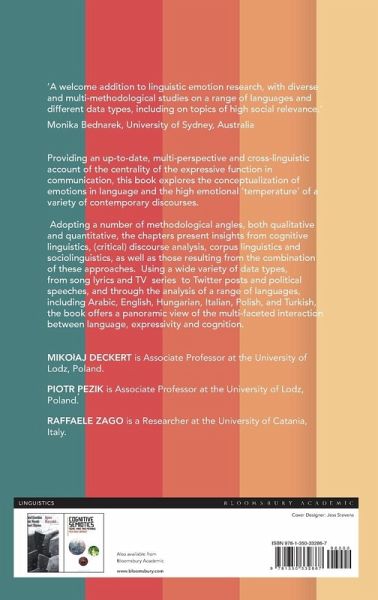 Providing an up-to-date, multi-perspective and cross-linguistic account of the centrality of the expressive function in communication, this book explores the conceptualization of emotions in language and the high emotional 'temperature' of a variety of contemporary discourses. Adopting a number of methodological angles, both qualitative and quantitative, the chapters present insights from cognitive linguistics, (critical) discourse analysis, corpus linguistics and sociolinguistics, as well as those resulting from the combination of these approaches. Using a wide variety of data types, from song lyrics and TV series to Twitter posts and political speeches, and through the analysis of a range of languages, including Arabic, English, Polish, Italian, Hungarian, and Turkish, the book offers a panoramic view of the multi-faceted interaction between language, expressivity and cognition.