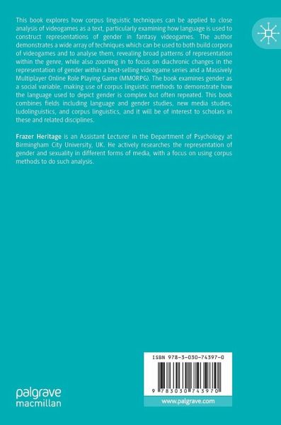 This book explores how corpus linguistic techniques can be applied to close analysis of videogames as a text, particularly examining how language is used to construct representations of gender in fantasy videogames. The author demonstrates a wide array of techniques which can be used to both build corpora of videogames and to analyse them, revealing broad patterns of representation within the genre, while also zooming in to focus on diachronic changes in the representation of gender within a best-selling videogame series and a Massively Multiplayer Online Role Playing Game (MMORPG). The book examines gender as a social variable, making use of corpus linguistic methods to demonstrate how the language used to depict gender is complex but often repeated. This book combines fields including language and gender studies, new media studies, ludolinguistics, and corpus linguistics, and it will be of interest to scholars in these and related disciplines.