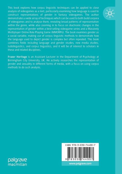 This book explores how corpus linguistic techniques can be applied to close analysis of videogames as a text, particularly examining how language is used to construct representations of gender in fantasy videogames. The author demonstrates a wide array of techniques which can be used to both build corpora of videogames and to analyse them, revealing broad patterns of representation within the genre, while also zooming in to focus on diachronic changes in the representation of gender within a best-selling videogame series and a Massively Multiplayer Online Role Playing Game (MMORPG). The book examines gender as a social variable, making use of corpus linguistic methods to demonstrate how the language used to depict gender is complex but often repeated. This book combines fields including language and gender studies, new media studies, ludolinguistics, and corpus linguistics, and it will be of interest to scholars in these and related disciplines.