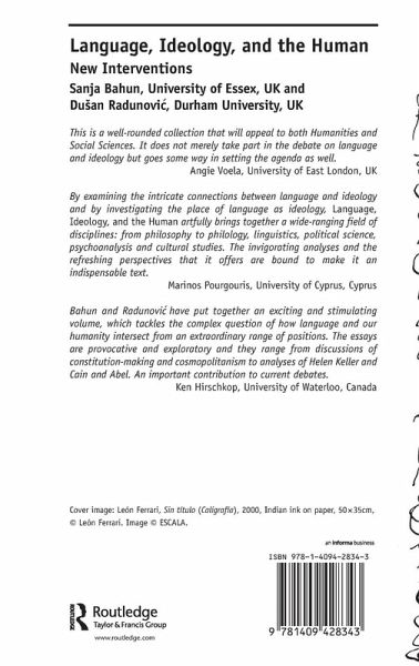 Language, Ideology, and the Human: New Interventions redefines the critical picture of language as a system of signs and ideological tropes inextricably linked to human existence. Offering reflections on the status, discursive possibilities, and political, ideological and practical uses of oral or written word in both contemporary society and the work of previous thinkers, this book traverses South African courts, British clinics, language schools in East Timor, prison cells, cinemas, literary criticism textbooks and philosophical treatises in order to forge a new, diversified perspective on language, ideology, and what it means to be human.