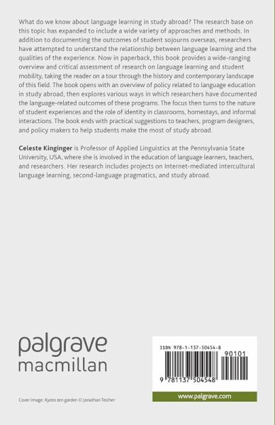 "This book provides a very good and concise overview of the general trends in research of language learning during study abroad experiences ... . precise and methodical writing style that the author uses makes the book very approachable and accessible for the intended audience: researchers, educators, and policy makers. ... presents an objective source of the research done in the field of language learning abroad and evaluates its benefits and limitations, paving the way for further studies in the field." (Aurora Salvador Sanchis, Linguist, linguistlist.org, March, 2016)