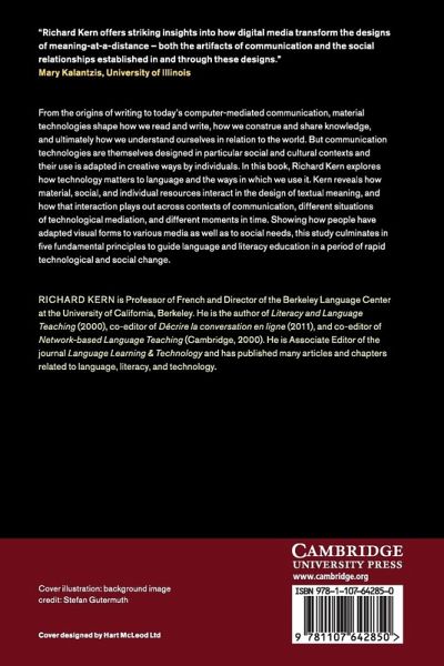 Richard Kern is Professor of French and Director of the Berkeley Language Center at the University of California, Berkeley. He is the author of Literacy and Language Teaching (2000), co-editor of Décrire la conversation en ligne (2011), and co-editor of Network-based Language Teaching (Cambridge, 2000). He is Associate Editor of the journal Language Learning and Technology and has published many articles and chapters related to language, literacy, and technology.