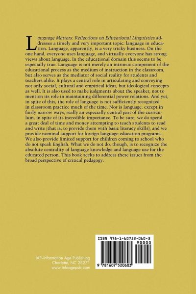 A volume in Contemporary Language Education Series Editor: Terry A. Osborn, Fordham University This book addresses a timely and very important topic: language in education. Language, apparently, is a very tricky business. On the one hand, everyone uses language, and virtually everyone has strong views about language. In the educational domain this seems to be especially true. Language is not merely an intrinsic component of the educational process as the medium of instruction in the classroom, but also serves as the mediator of social reality for students and teachers alike. It plays a central role in articulating and conveying not only social, cultural and empirical ideas, but ideological concepts as well. It is also used to make judgments about the speaker, not to mention its role in maintaining differential power relations. And yet, in spite of this, the role of language is not sufficiently recognized in classroom practice much of the time. Nor is language, except in fairly narrow ways, really an especially central part of the curriculum, in spite of its incredible importance. To be sure, we do spend a great deal of time and money attempting to teach students to read and write (that is, to provide them with basic literacy skills), and we provide nominal support for foreign language education programs. We also provide limited support for children coming to school who do not speak English. What we do not do, though, is to recognize the absolute centrality of language knowledge and language use for the educated person. This book seeks to address these issues from the broad perspective of critical pedagogy.