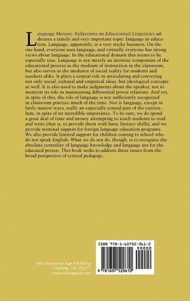 A volume in Contemporary Language Education Series Editor: Terry A. Osborn, Fordham University This book addresses a timely and very important topic: language in education. Language, apparently, is a very tricky business. On the one hand, everyone uses language, and virtually everyone has strong views about language. In the educational domain this seems to be especially true. Language is not merely an intrinsic component of the educational process as the medium of instruction in the classroom, but also serves as the mediator of social reality for students and teachers alike. It plays a central role in articulating and conveying not only social, cultural and empirical ideas, but ideological concepts as well. It is also used to make judgments about the speaker, not to mention its role in maintaining differential power relations. And yet, in spite of this, the role of language is not sufficiently recognized in classroom practice much of the time. Nor is language, except in fairly narrow ways, really an especially central part of the curriculum, in spite of its incredible importance. To be sure, we do spend a great deal of time and money attempting to teach students to read and write (that is, to provide them with basic literacy skills), and we provide nominal support for foreign language education programs. We also provide limited support for children coming to school who do not speak English. What we do not do, though, is to recognize the absolute centrality of language knowledge and language use for the educated person. This book seeks to address these issues from the broad perspective of critical pedagogy.