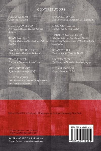 CONTRIBUTORS: FERGUS KERR OP Charity as Friendship SIMON TUGWELL OP Prayer, Humpty Dumpty and Thomas Aquinas BRIAN DAVIES OP Classical Theism and the Doctrine of Divine Simplicity DAVID B. BURRELL CSC Distinguishing God from the World DENYS TURNER Feuerbach, Marx and Reductivism ANTHONY KENNY Aquinas on Knowledge of Self P. J. FITZPATRICK Some Seventeenth-Century Disagreements and Transubstantiation HUGO A. MEYNELL Faith, Objectivity, and Historical Falsifiability MARGARET DAVIES The Genre of the First Gospel TIMOTHY RADCLIFFE OP 'The Coming of the Son of Man': Mark's Gospel and the Subversion of 'The Apocalyptic Imagination' BRIAN WICKER Taking Away the Sin of the World J. M. CAMERON The Theory and Practice of Autobiography ENDA MCDONAGH Prayer, Poetry and Politics