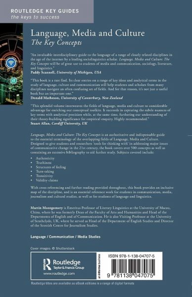 Language, Media and Culture: The Key Concepts is an authoritative and indispensable guide to the essential terminology of the overlapping fields of Language, Media and Culture. Designed to give students and researchers 'tools for thinking with' in addressing major issues of communicative change in the 21st century, the book covers over 500 concepts as well as containing an extensive bibliography to aid further study. Subjects covered include: