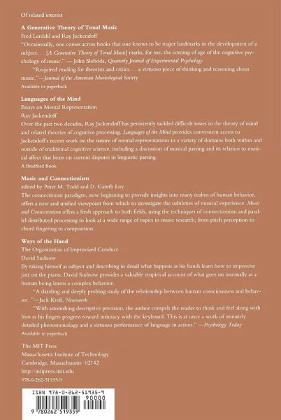 The first cognitivist theory of the nature of ineffable, or verbally inexpressible, musical knowledge. Taking a novel approach to a longstanding problem in the philosophy of art, Diana Raffman provides the first cognitivist theory of the nature of ineffable, or verbally inexpressible, musical knowledge. In the process she also sheds light on central issues in the theory of mind. Raffman invokes recent theory in linguistics and cognitive psychology to provide an account of the content and etiology of musical knowledge that "can not be put into words." Within the framework of Lerdahl and Jackendoff's generative theory of music perception, she isolates three kinds of ineffability attending our conscious knowledge of music—access, feeling, and nuance ineffability—and shows how these arise. Raffman makes a detailed comparison of linguistic and musical understanding, culminating in an attack on the traditional idea that human emotions constitute the meaning or semantic content of music. She compares her account of musical ineffability to several traditional approaches to the problem, particularly those of Nelson Goodman and Stanley Cavell. In the concluding chapter, Raffman explores a significant obstacle that her theory poses to Daniel Dennett's propositional theory of consciousness.