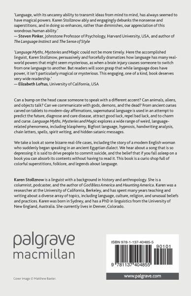 'Language Myths, Mysteries and Magic could not be more timely. Here the accomplished linguist, Karen Stollznow, persuasively and forcefully dramatizes how language has many real world powers that might seem mysterious, as when a brain injury causes someone to switch from one language to another. But readers will soon grasp that while language does have power, it isn't particularly magical or mysterious. This engaging, one-of a kind, book deserves very wide readership.' - Elizabeth Loftus, University of California, US