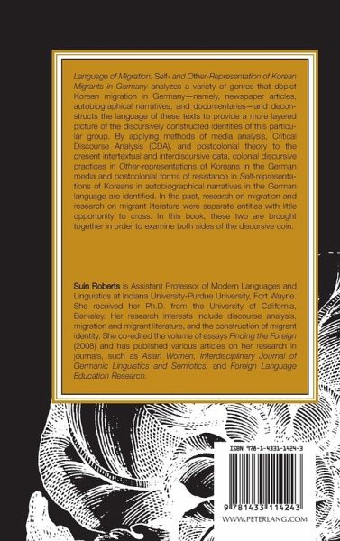 Language of Migration: Self- and Other-Representation of Korean Migrants in Germany analyzes a variety of genres that depict Korean migration in Germany - namely, newspaper articles, autobiographical narratives, and documentaries - and deconstructs the language of these texts to provide a more layered picture of the discursively constructed identities of this particular group. By applying methods of media analysis, Critical Discourse Analysis (CDA), and postcolonial theory to the present intertextual and interdiscursive data, colonial discursive practices in Other-representations of Koreans in the German media and postcolonial forms of resistance in Self-representations of Koreans in autobiographical narratives in the German language are identified. In the past, research on migration and research on migrant literature were separate entities with little opportunity to cross. In this book, these two are brought together in order to examine both sides of the discursive coin.