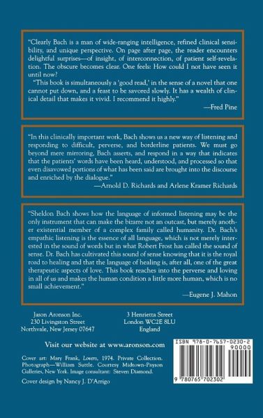 From long before the Trojan War to the ethnic cleansings of our own century, people have often used their potential to treat other human beings as things. It is this treatment of another person as a thing rather than as a human being that the eminent psychoanalyst, Dr. Sheldon Bach, sees as a perversion of object relationships and that forms the background of this powerful book. Perversion is a lack of capacity for whole object love, and while this includes the sexual perversions it also includes certain character perversions, character disorders and psychotic conditions. In this brilliant exposition Dr. Bach shows how some of the paradoxes of self/other, subjectivity/objectivity, male/female and instinct/object are negotiated in both illness and health.