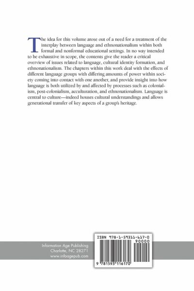 The idea for this volume arose out of a need for a treatment of the interplay between language and ethnonationalism within both formal and nonformal educational settings. In no way intended to be exhaustive in scope, the contents give the reader a critical overview of issues related to language, cultural identity formation, and ethnonationalism. The chapters within this work deal with the effects of different language groups with differing amounts of power within society coming into contact with one another, and provide insight into how language is both utilized by and affected by processes such as colonialism, post-colonialism, acculturation, and ethnonationalism. Language is central to culture- indeed houses cultural understandings and allows generational transfer of key aspects of a group's heritage.