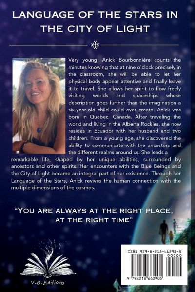 From a very young age, Anick Bourbonnière would sit quietly at her school desk, counting the minutes until the clock struck nine. At that precise moment, within the ordinary walls of a classroom, she would allow her physical body to remain still and attentive, while her consciousness slipped away-free to wander. Her spirit would drift effortlessly beyond the confines of space and time, exploring magnificent realms, celestial cities, and vast starships that defied even the wildest dreams of a six-year-old. These inner journeys were not imaginary games; they were vivid, immersive experiences far more intricate than anything she could put into words. Anick's life has always been marked by a sense of otherworldly purpose. Born in Quebec, Canada, she was drawn from an early age to the mysteries of existence and the unseen forces that move through all things. Her path led her to travel extensively, absorbing the energies of sacred lands and ancient cultures. She eventually settled in Ecuador, where the mountains and spirit of the land offered her a powerful resonance with her inner calling. There, with her husband and two children, she lives a life deeply intertwined with the spiritual realms. Her abilities began to emerge clearly in childhood-the gift of communicating with ancestors, hearing the whispers of those who came before, and feeling the presence of guides and beings not visible to the human eye. As she grew older, these connections only deepened. Anick found herself surrounded by spirits who supported and guided her, offering insights and teachings from beyond the veil. Among them were the luminous Blue Beings, entities of peace and wisdom, who introduced her to the radiant City of Light-a place of immense beauty and harmony that became a central part of her spiritual landscape. Through what she calls the Language of the Stars-a form of communication that transcends words-Anick channels knowledge, frequencies, and messages intended to awaken the human soul. Her work is rooted in helping others remember their place within the vast network of dimensions, timelines, and cosmic truths. With every encounter and transmission, she helps bridge the gap between the physical and the infinite, reviving our connection to the deeper mysteries of the universe. Anick's life is not only a testament to her unique gifts but a living example of what it means to walk between worlds.