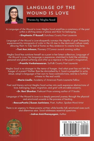 "Language of the Wound is Love" primarily deals with poems reflecting the pain and loss of first-generation immigrants losing their primary language while trying to fit their hyphenated identities. It highlights the fact that every wound inflicted because of gender or sexual-based discrimination, the feeling of loss and belonging of immigrant families, the pain of isolation during the pandemic, or discrimination based on gender or color, has a hunger for love. Its language is love. Love is the acceptance everyone is feverishly seeking in this topsy-turvy world, hence the title. This collection has been divided into five sections namely "Language Lost", "Blood on Our Hands", "Every Pain Has a Story", "A Collective State of Disbelief " and "Brotherhood". The opening section "Language Lost" deals with the poems reflecting the pain and loss of first-generation immigrants losing their primary language while trying to fit their hyphenated identities. It talks about the pain deeply experienced by people of color and other minorities living in a racist and xenophobic society. The collection depicts the isolation felt by the world living their own version of realities during the pandemic and the longing effect on its social-emotional bonding. This collection highlights my journey, gives it a voice, and strengthens the fact that every wound has a language that needs love, and patience intermixed with sagacious interpretation.