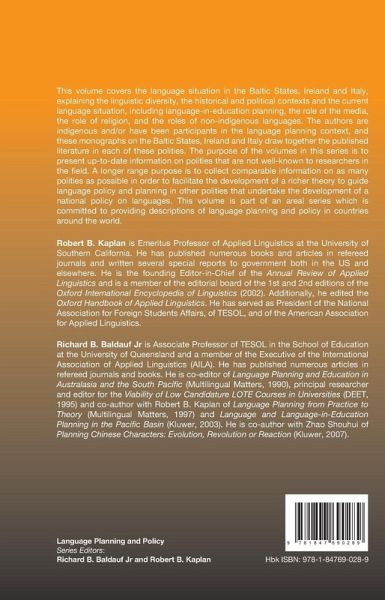 This volume covers the language situation in The Baltic States, Ireland and Italy explaining the linguistic diversity, the historical and political contexts and the current language situation - including language-in-education planning, the role of the media, the role of religion, and the roles of non-indigenous languages.