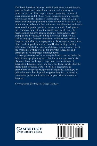This book describes the way in which politicians, church leaders, generals, leaders of national movements and others try to influence our use of language. Using many examples, the author argues that language planning is never attempted for its own sake, but rather for the attainment of nonlinguistic ends.