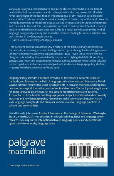 "Students and researchers will find in Language Policy a readerfriendly book that summarizes major state-of-the-art developments in the field and shows new paths for research, all the while making a convincing call on readers to advocate for multilingualism. Johnson's book is without a doubt an excellent reference for master's- or doctoral-level education courses that include or focus on the study of language policy." - Anthropology & Education