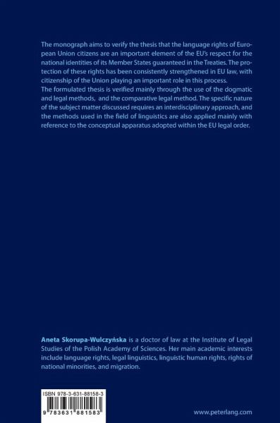 The monograph aims to verify the thesis that the language rights of European Union citizens are an important element of the EU's respect for the national identities of its Member States guaranteed in the Treaties. The protection of these rights has been consistently strengthened in EU law, with citizenship of the Union playing an important role in this process.