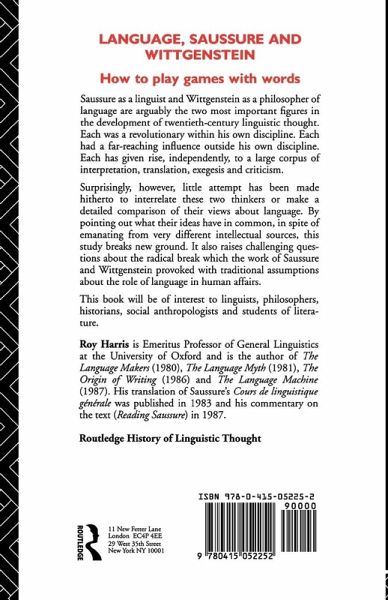 Saussure as a linguist and Wittgenstein as a philosopher of language are arguably the two most important figures in the development of twentieth-century linguistic thought. By pointing out what their ideas have in common, in spite of emanating from very different intellectual sources, this study breaks new ground.