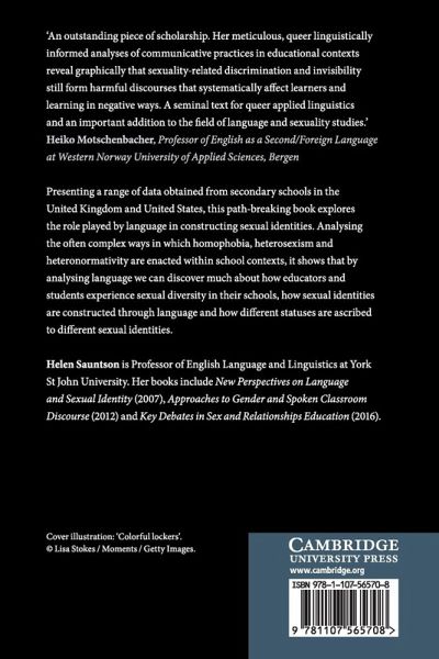 Presenting a range of data obtained from secondary schools in the UK and US, this path-breaking book explores the role played by language in constructing sexual identities. Analysing the often complex ways in which homophobia, heterosexism and heteronormativity are enacted within school contexts, it shows that by analysing language, we can discover much about how educators and students experience sexual diversity in their schools, how sexual identities are constructed through language, and how different statuses are ascribed to different sexual identities.