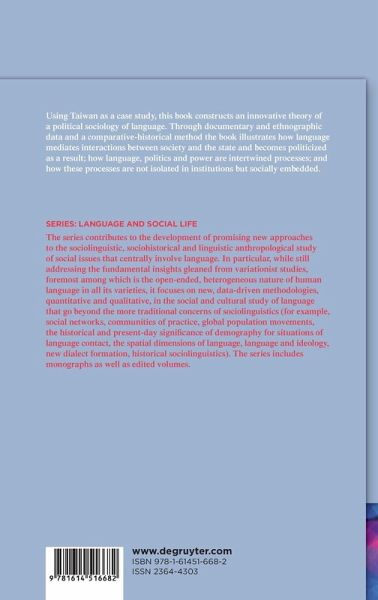 Using Taiwan as a case study, this book constructs an innovative theory of a political sociology of language. Through documentary and ethnographic data and a comparative-historical method the book illustrates how language mediates interactions between society and the state and becomes politicized as a result; how language, politics and power are intertwined processes; and how these processes are not isolated in institutions but socially embedded.