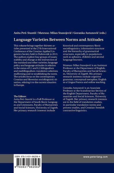 Anita Peti-Stanti¿ is a Full Professor at the Department of South Slavic Languages and Literatures, Faculty of Humanities and Social Sciences, University of Zagreb. Her primary research interests include historical and contemporary Slavic sociolinguistics, information structure and the hierarchy of grammatical structures, especially in populations such as aphasics, children and second language learners. Mateusz-Milan Stanojevi¿ is an Assistant Professor at the Department of English, Faculty of Humanities and Social Sciences, University of Zagreb. His primary research interests include cognitive grammar, conceptual metaphor, English as a Lingua Franca and online teaching. Goranka Antunovi¿ is an Associate Professor at the Scandinavian Section of the English Department, Faculty of Humanities and Social Sciences, University of Zagreb. Her primary research interests are in the field of translation studies, in particular translation norms and process studies, and Croatian-Swedish contrastive linguistics.