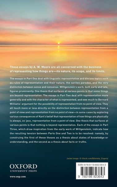 These essays by A.W. Moore are all concerned with the business of representing how things are - its nature, its scope, and its limits. The essays in Part One deal with linguistic representation and discuss topics such as rules of representation and their nature, the sorites paradox, and the very distinction between sense and nonsense. Wittgenstein's work, both early and late, figures prominently. One thesis that surfaces at various points is that some things are beyond representation. The essays in Part Two deal with representation more generally and with the character of what is represented, and owe much to Bernard Williams's argument for the possibility of representation from no point of view. They touch more or less directly on the distinction between representation from a point of view and representation from no point of view-in some cases by exploring various consequences of Kant's belief that representation of how things are physically is always, eo ipso, representation from a point of view. One thesis that surfaces at various points is that nothing is beyond representation. Each of the essays in Part Three, which draw inspiration from the early work of Wittgenstein, indicate how the resulting tension between Parts One and Two is to be resolved: namely, by construing the first part as a thesis about states of knowledge or understanding, and the second part as a thesis about facts or truths.