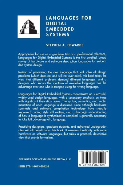 Languages for Digital Embedded Systems concentrates on successful, widely-used design languages, with a secondary emphasis on those with significant theoretical value. The syntax, semantics, and implementation of each language is discussed, since although hardware synthesis and software compilation technology have steadily improved, coding style still matters, and a thorough understanding of how a language is synthesized or compiled is generally necessary to take full advantage of a language.