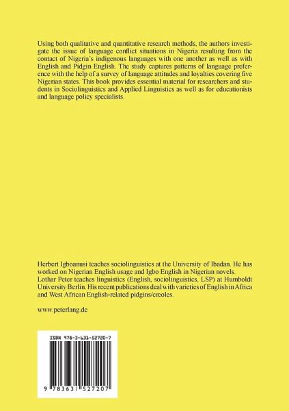 Using both qualitative and quantitative research methods, the authors investigate the issue of language conflict situations in Nigeria resulting from the contact of Nigeria's indigenous languages with one another as well as with English and Pidgin English. The study captures patterns of language preference with the help of a survey of language attitudes and loyalties covering five Nigerian states. This book provides essential material for researchers and students in Sociolinguistics and Applied Linguistics as well as for educationists and language policy specialists.