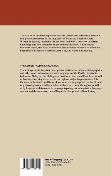 The studies in this book represent the rich, diverse and substantial research being conducted today in the linguistics of Mainland Southeast Asia. The chapters cover a broad scope. Several studies address questions of language relatedness, often challenging conventional assumptions about the status of language contact as an explanatory factor in accounting for linguistic similarities. Several address the question of Mainland Southeast Asia as a linguistic area, exploring new ways to imagine and define the boundaries, and indeed the boundedness, of a Mainland Southeast Asia area. Two contributions rethink the received notion of the 'sesquisyllable' with new empirical and theoretical angles. And a set of chapters explores topics in the morphology and syntax of the region's languages, sometimes challenging orthodox assumptions and claims about what a typical language of Mainland Southeast Asia is like. Written by leading researchers in the field, and with a substantial overview of current knowledge and new directions by the volume editors N. J. Enfield and Bernard Comrie, this book will serve as an authoritative source on where the linguistics of Mainland Southeast Asia is at, and where it is heading.