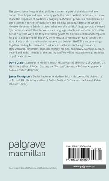 Introduction; David Craig and James Thompson 1. Good Government; James Thompson 2. Statesmanship; David Craig 3. Patriotism; Jonathan Parry 4. Religion; Simon Skinner 5. Popular Political Economy; Anthony Howe 6. Democracy; Robert Saunders 7. Women's Suffrage; Ben Griffin 8. Irish Nationalism; Matthew Kelly 9. The Silence of Empire: Imperialism and India; Jon Wilson
