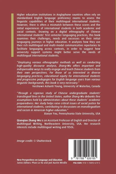 Drawing on a digital ethnography of Chinese international students' first semester languaging practices, this book examines how they use their multilingual and multi-modal communicative repertories to facilitate languaging across contexts, in order to suggest how universities might better serve the needs of international students.