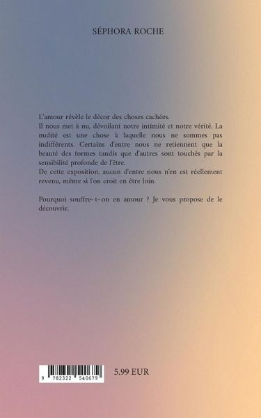 L'amour révèle le décor des choses cachées.Il nous met à nu, dévoilant notre intimité et notre vérité. La nudité est une chose à laquelle nous ne sommes pas indifférents. Certains d'entre nous ne retiennent que la beauté des formes tandis que d'autres sont touchés par la sensibilité profonde de l'être. De cette exposition, aucun d'entre nous n'en est réellement revenu, même si l'on croit en être loin. Pourquoi souffre-t-on en amour ? Je vous propose de le découvrir.