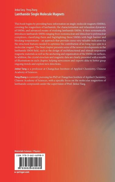 This book begins by providing basic information on single-molecule magnets (SMMs), covering the magnetism of lanthanide, the characterization and relaxation dynamics of SMMs and advanced means of studying lanthanide SMMs. It then systematically introduces lanthanide SMMs ranging from mononuclear and dinuclear to polynuclear complexes, classifying them and highlighting those SMMs with high barrier and blocking temperatures - an approach that provides some very valuable indicators for the structural features needed to optimize the contribution of an Ising type spin to a molecular magnet. The final chapter presents some of the newest developments in the lanthanide SMM field, such as the design of multifunctional and stimuli-responsive magnetic materials as well as the anchoring and organization of the SMMs on surfaces. In addition, the crystal structure and magnetic data are clearly presented with a wealth of illustrations in each chapter, helping newcomers and experts alike to better grasp ongoing trends and explore new directions.