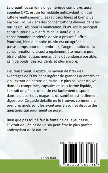 La proanthocyanidine oligomérique complexe, aussi appelée OPC, est un formidable antioxydant, un qui lutte le vieillissement, les radicaux libres et bien plus encore. Trouvé dans des concentrations élevées dans les raisins utilisés pour la vinification, l'OPC est le principal contributeur aux bienfaits de la santé que la consommation modérée de vin a prouvé à offrir. Pourtant, bien que boire du vin est un agréable passe-temps pour de nombreux, l'augmentation de la consommation d'alcool a également été montré pour être problématique, menant à la dépendance possible, gain de poids, des accidents et plus encore.Heureusement, il existe un moyen de tirer des avantages de l'OPC sans ingérer de grandes quantités de vin - extrait de pépins de raisin. Le plus souvent trouvé dans les comprimés, capsules et sous forme liquide, l'extrait de pépins de raisin est facilement disponible dans la plupart des magasins de santé et est facilement digestible. Ce guide détaille où le trouver, comment le prendre, quels sont les avantages à avoir et discute des questions qui pourraient se poser.Bien que pas tout à fait la fontaine de la jeunesse, l'Extrait de Pépins de Raisin peut être le plus parfait antioxydant de la nature.