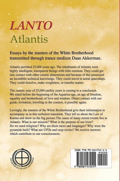 Essays by the masters of the White Brotherhood transmitted via trance medium Daan Akkerman. Atlantis perished 26,000 years ago. The inhabitants of Atlantis were highly intelligent, transparent beings with little emotion. They could get into contact with other cosmic dimensions and because of this possessed an incredible technical knowledge. They could travel in astral spaceships. They could dissolve, make weightless, or transfer matter. The cosmic year of 26,000 earthly years is coming to a conclusion. We stand before the beginning of the Aquarius age, an age of freedom, equality and brotherhood, of love and wisdom. Direct contact with our guide, levitation, traveling in the cosmos, is possible again. Lovingly, the masters of the White Brotherhood give their information to accompany us in this turbulent transition. They tell us about the Law of Karma and show us the big picture.