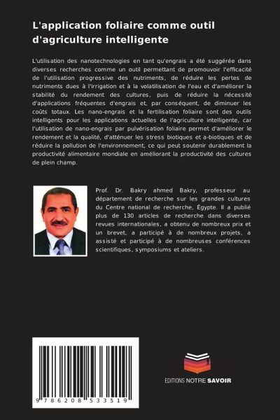 L'utilisation des nanotechnologies en tant qu'engrais a été suggérée dans diverses recherches comme un outil permettant de promouvoir l'efficacité de l'utilisation progressive des nutriments, de réduire les pertes de nutriments dues à l'irrigation et à la volatilisation de l'eau et d'améliorer la stabilité du rendement des cultures, puis de réduire la nécessité d'applications fréquentes d'engrais et, par conséquent, de diminuer les coûts totaux. Les nano-engrais et la fertilisation foliaire sont des outils intelligents pour les applications actuelles de l'agriculture intelligente, car l'utilisation de nano-engrais par pulvérisation foliaire permet d'améliorer le rendement et la qualité, d'atténuer les stress biotiques et a-biotiques et de réduire la pollution de l'environnement, ce qui peut soutenir durablement la productivité alimentaire mondiale en améliorant la productivité des cultures de plein champ.