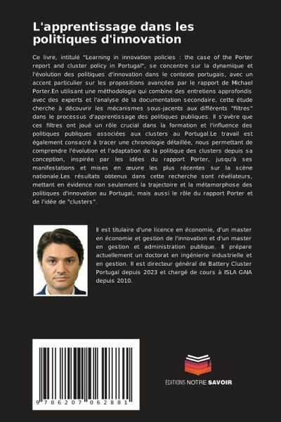 Ce livre, intitulé "Learning in innovation policies : the case of the Porter report and cluster policy in Portugal", se concentre sur la dynamique et l'évolution des politiques d'innovation dans le contexte portugais, avec un accent particulier sur les propositions avancées par le rapport de Michael Porter.En utilisant une méthodologie qui combine des entretiens approfondis avec des experts et l'analyse de la documentation secondaire, cette étude cherche à découvrir les mécanismes sous-jacents aux différents "filtres" dans le processus d'apprentissage des politiques publiques. Il s'avère que ces filtres ont joué un rôle crucial dans la formation et l'influence des politiques publiques associées aux clusters au Portugal.Le travail est également consacré à tracer une chronologie détaillée, nous permettant de comprendre l'évolution et l'adaptation de la politique des clusters depuis sa conception, inspirée par les idées du rapport Porter, jusqu'à ses manifestations et mises en oeuvre les plus récentes sur la scène nationale.Les résultats obtenus dans cette recherche sont révélateurs, mettant en évidence non seulement la trajectoire et la métamorphose des politiques d'innovation au Portugal, mais aussi le rôle du rapport Porter et de l'idée de "clusters".