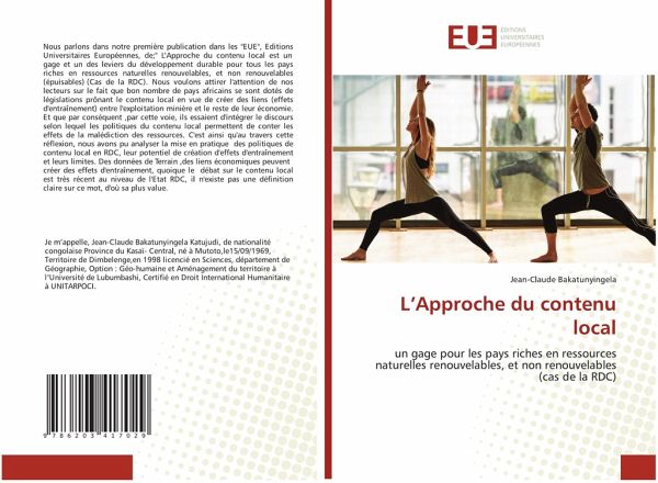 Nous parlons dans notre première publication dans les "EUE", Editions Universitaires Européennes, de;" L'Approche du contenu local est un gage et un des leviers du développement durable pour tous les pays riches en ressources naturelles renouvelables, et non renouvelables (épuisables) (Cas de la RDC). Nous voulons attirer l'attention de nos lecteurs sur le fait que bon nombre de pays africains se sont dotés de législations prônant le contenu local en vue de créer des liens (effets d'entraînement) entre l'exploitation minière et le reste de leur économie. Et que par conséquent ,par cette voie, ils essaient d'intégrer le discours selon lequel les politiques du contenu local permettent de conter les effets de la malédiction des ressources. C'est ainsi qu'au travers cette réflexion, nous avons pu analyser la mise en pratique des politiques de contenu local en RDC, leur potentiel de création d'effets d'entraînement et leurs limites. Des données de Terrain ,des liens économiques peuvent créer des effets d'entraînement, quoique le débat sur le contenu local est très récent au niveau de l'Etat RDC, il n'existe pas une définition claire sur ce mot, d'où sa plus value.