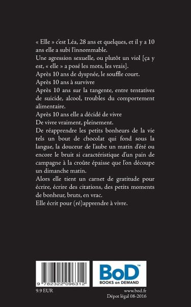 " Elle " c'est Léa, 28 ans et quelques et il y a 10 ans elle a subi l'innommable. Une agression sexuelle, ou plutôt un viol (ça y est, " elle " a posé les mots, les vrais).