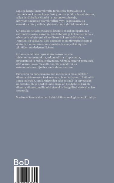 Lapsi ja hengellinen väkivalta käsittelee lapsuudessa ja nuoruudessa koettua hengellistä yhteisö- ja lähisuhdeväkivaltaa, vallan ja väkivallan käyttöä ja taustamekanismeja, selviytymiskeinoja ja väkivallan lyhyt- ja pitkäaikaisia seurauksia niin yksilölle, yhteisölle kuin yhteiskunnallekin. Kirjassa käsitellään kristinuskon kulttuurihistoriaa, uskonnollista kehitystä ja kokemisen tapoja, selviytymiskykyisyyttä eli resilienssiä, kunniaväkivaltaa, irtautumista väkivaltaisiksi koetuista toimintaympäristöistä ja väkivallan vaikutusta aikuisten lasten ja ikääntyvien tekijöiden suhdedynamiikkaan. Kirjassa pohditaan myös väkivaltakokemusten mielenterveysseurauksia, uskonnollista syrjäytymistä, riippuvuutta, ryhmäytymistä, ryhmäkulttuurin muotoja ja prosesseja sekä väkivaltakokemuksille annettuja merkityksiä kokemusasiantuntijoiden muistelukerronnassa. Tämä kirja on puheenvuoro niin meillä kuin maailmallakin aiheesta virinneeseen keskusteluun. Se on tarkoitettu lisäämään tietoa teologian, sen lähitieteiden sekä sosiaali- ja terveysalojen ammattilaisille ja niitä opiskeleville. Kirja on hyödyllinen kaikille aiheesta kiinnostuneille sekä tietenkin hengellistä väkivaltaa itse kokeneille.