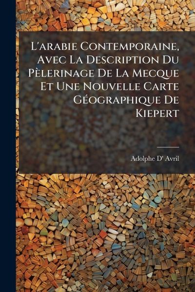 L'arabie Contemporaine, Avec La Description Du Pèlerinage De La Mecque Et Une Nouvelle Carte Géographique De Kiepert, written by Adolphe D' Avril and published in 1868, offers a fascinating glimpse into 19th-century Arabia. This historical account provides a detailed description of the pilgrimage to Mecca, a central tenet of Islam, and includes a new geographical map of the region by Kiepert. D' Avril's work stands as a valuable resource for understanding the cultural, religious, and geographical landscape of Arabia during this period. Readers interested in the history of the Middle East, Islamic traditions, or the development of geographical knowledge will find this book to be an enlightening and informative read. This volume captures a moment in time, offering insights into a region of enduring significance. This work has been selected by scholars as being culturally important, and is part of the knowledge base of civilization as we know it. This work was reproduced from the original artifact, and remains as true to the original work as possible. Therefore, you will see the original copyright references, library stamps (as most of these works have been housed in our most important libraries around the world), and other notations in the work. This work is in the public domain in the United States of America, and possibly other nations. Within the United States, you may freely copy and distribute this work, as no entity (individual or corporate) has a copyright on the body of the work. As a reproduction of a historical artifact, this work may contain missing or blurred pages, poor pictures, errant marks, etc. Scholars believe, and we concur, that this work is important enough to be preserved, reproduced, and made generally available to the public. We appreciate your support of the preservation process, and thank you for being an important part of keeping this knowledge alive and relevant.